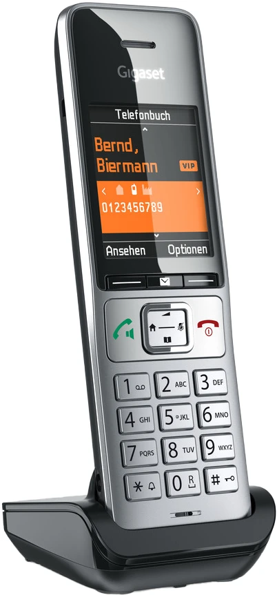 Design oder Ergonomie? Hightech oder Komfort? Familienleben oder Home Office? Am besten alles gleichzeitig! Das Gigaset COMFORT 500HX liegt perfekt in der Hand, dank seines zeitlos-edlen Designs macht sich dieses deutsche Qualitätsprodukt im Wohnbereich ebenso gut wie auf Ihrem Schreibtisch. Die Technik unter seiner schicken Hülle ist innovativ, seine zahlreichen Funktionen werden Sie überzeugen. Dieses leistungsstarke Mobilteil für Ihren Router sieht aber nicht nur gut aus, sondern kann sich auch hören lassen: Seine Akustik ist exzellent. Und dank seines Headset-Anschlusses sowie der integrierten Freisprecheinrichtung (in zertifizierter HD Voice-Qualität) bleiben Ihre Hände frei: So überzeugt das Gigaset COMFORT 500HX auch im beruflichen Einsatz.
